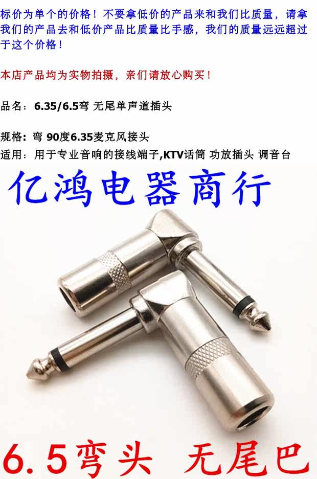 6.5 Колея без хвоста 6.35 Одиноканальная аудио -заглушка на 90 градусов Большой двухкачественный сварка микрофона Миксера