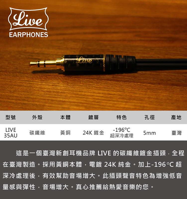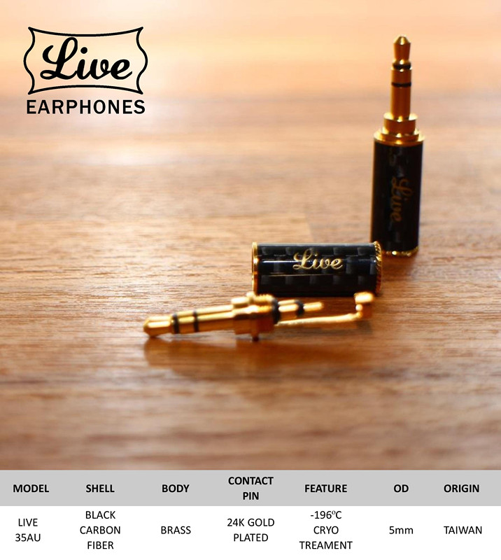 Taiwan Live 35AU углеродное волокно 3,5 мм24K Золотая штекер