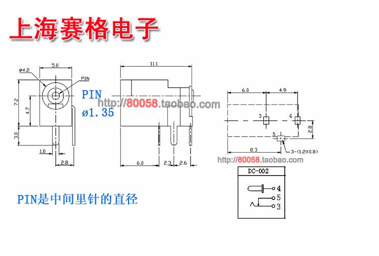 описывать:Штекер подножки сокета. Размер 3,5*3,35 мм