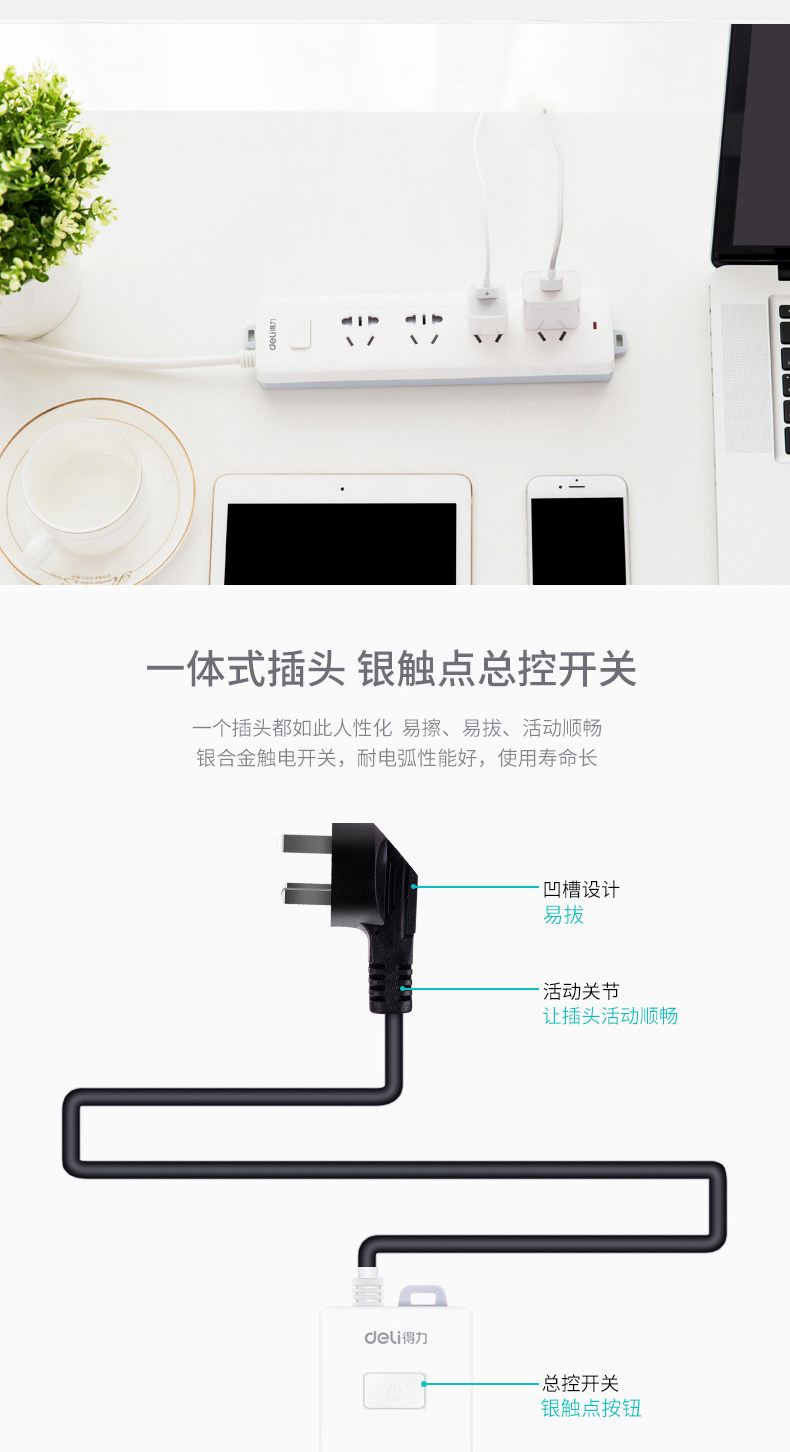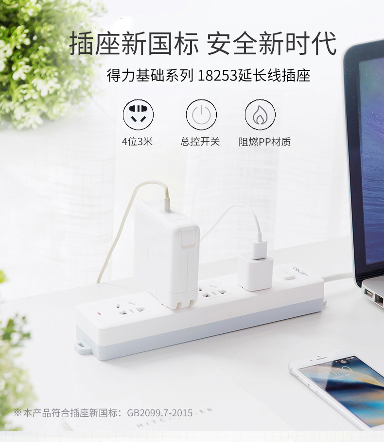 Deli 18253 Расширенная линейная розетка Новая национальная стандартная заглушка -В пористую электропроводную электропроводку.