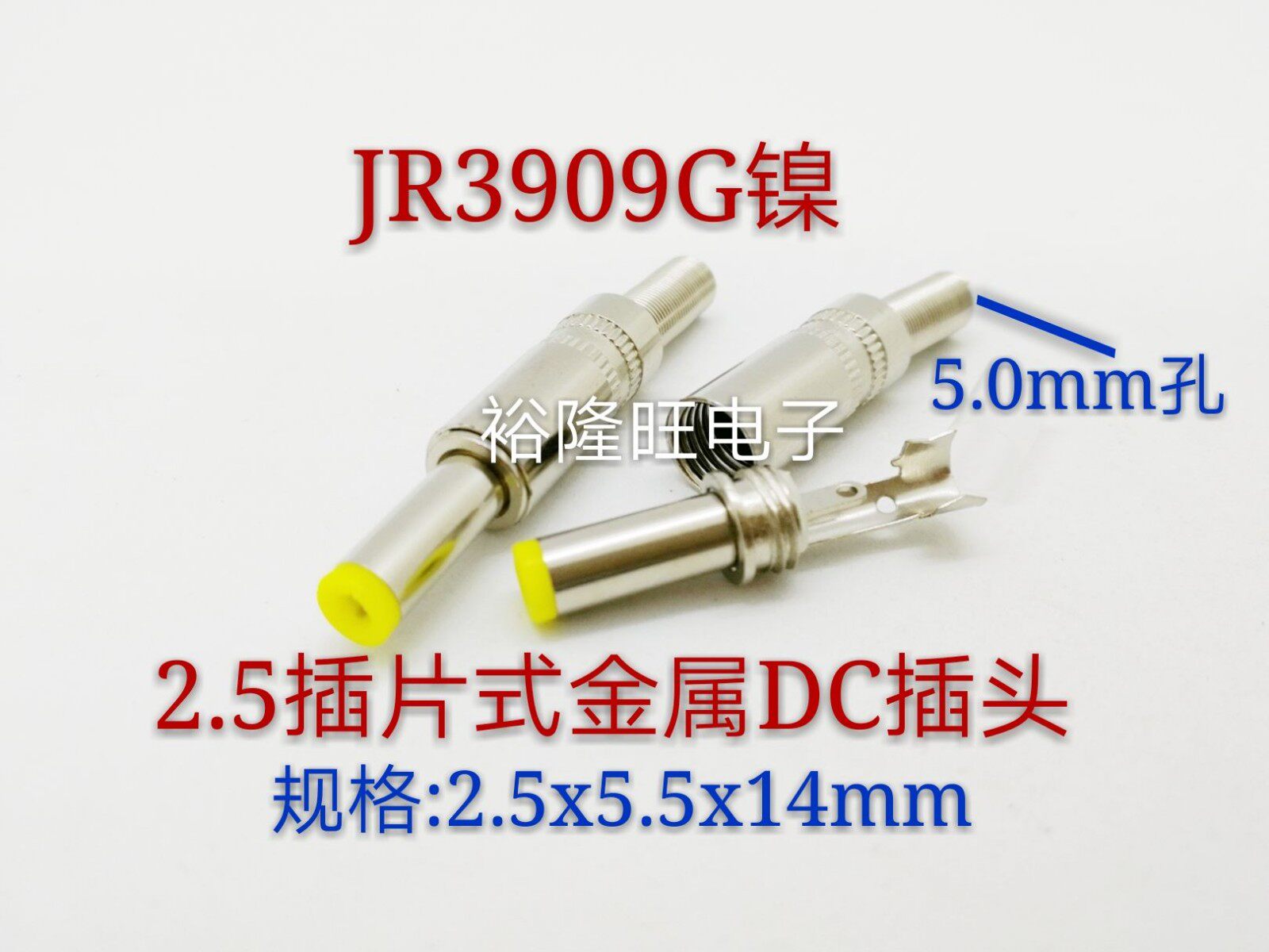 Никелевое покрытие металл, сжигание света, хорошая контактная производительность, хорошая сила вставки.Подключение DC -В рабочей части размера: 2,5 мм в полях стеблей, внешний диаметр 5,5 мм медной трубы и 14 мм по длине медной трубы.Небольшая упаковка, 100 за сумку, 10 выстрелов!Цена - это цитата.(Прямые продажи завода, скидка на переговоры о больших ценах)