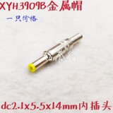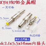 Вилка розетки 2,1 постоянного тока, металлическая крышка, желтая головка лезвия, внутренняя вилка источника питания постоянного тока 12 В, DC 2,1x5,5 мм