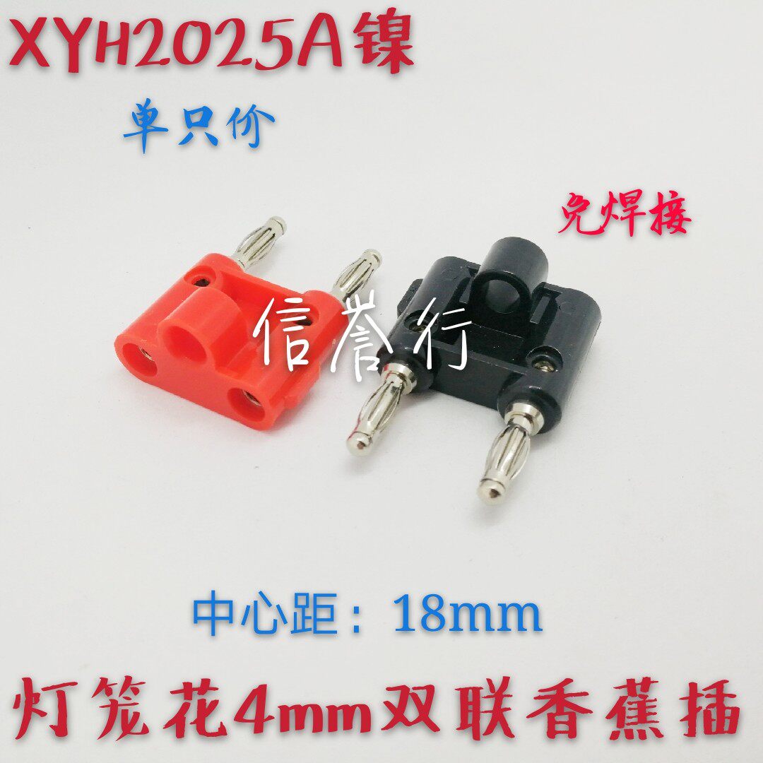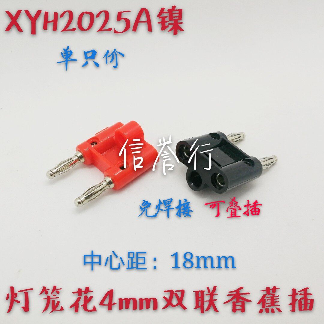 Двойной штекер типа «банан», 4 мм, никелированный, соединенный, тестовая линия, двухрядный, двухпозиционный, фонарь, цветок, головка без пайки, межосевое расстояние 18 мм