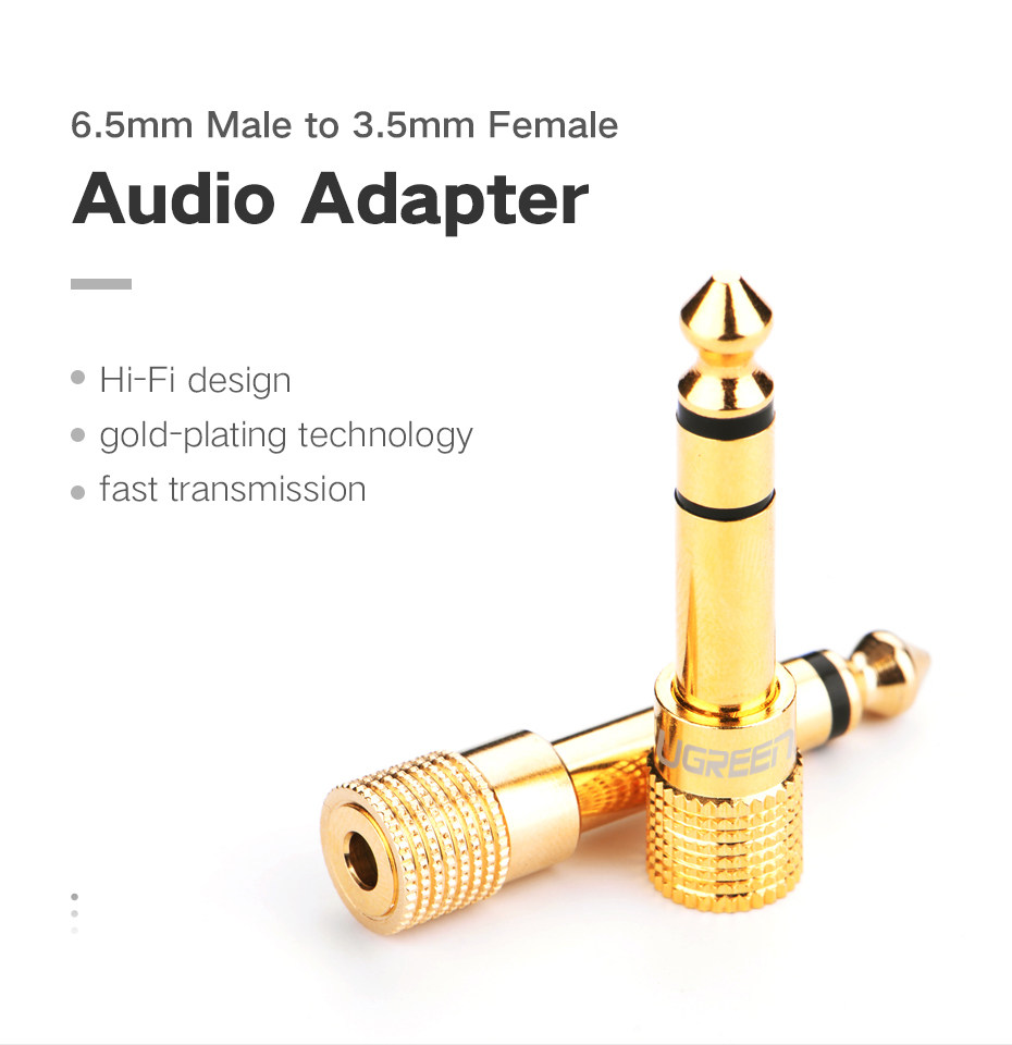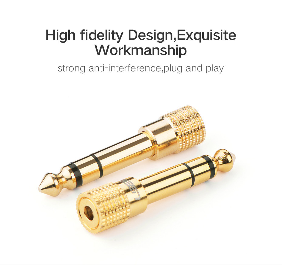 Ugreen от 6,35 мм до 3,5 мм аудио -адаптер предназначен для подключения ваших смартфонов, планшетов, iPod, MP3 или наушников со стандартными 3,5 мм 1/8 дюйма к большинству профессиональных аудио и домашнего аудиооборудования, таких как усилители, консоль домашнего театра усилители или AV -приемник;