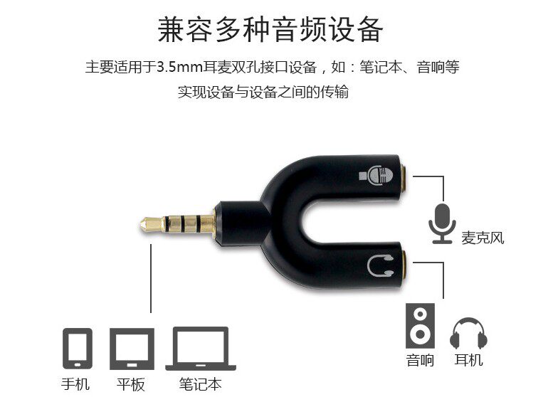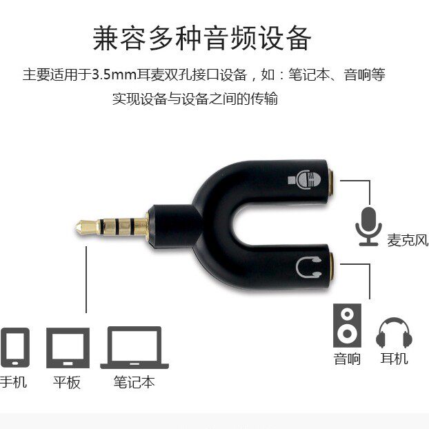 U-образный разъем для наушников для мобильного телефона, прямая трансляция, караоке, гарнитура, микрофон, аудиоконвертер 3,5 мм, 4 секции на 3 секции