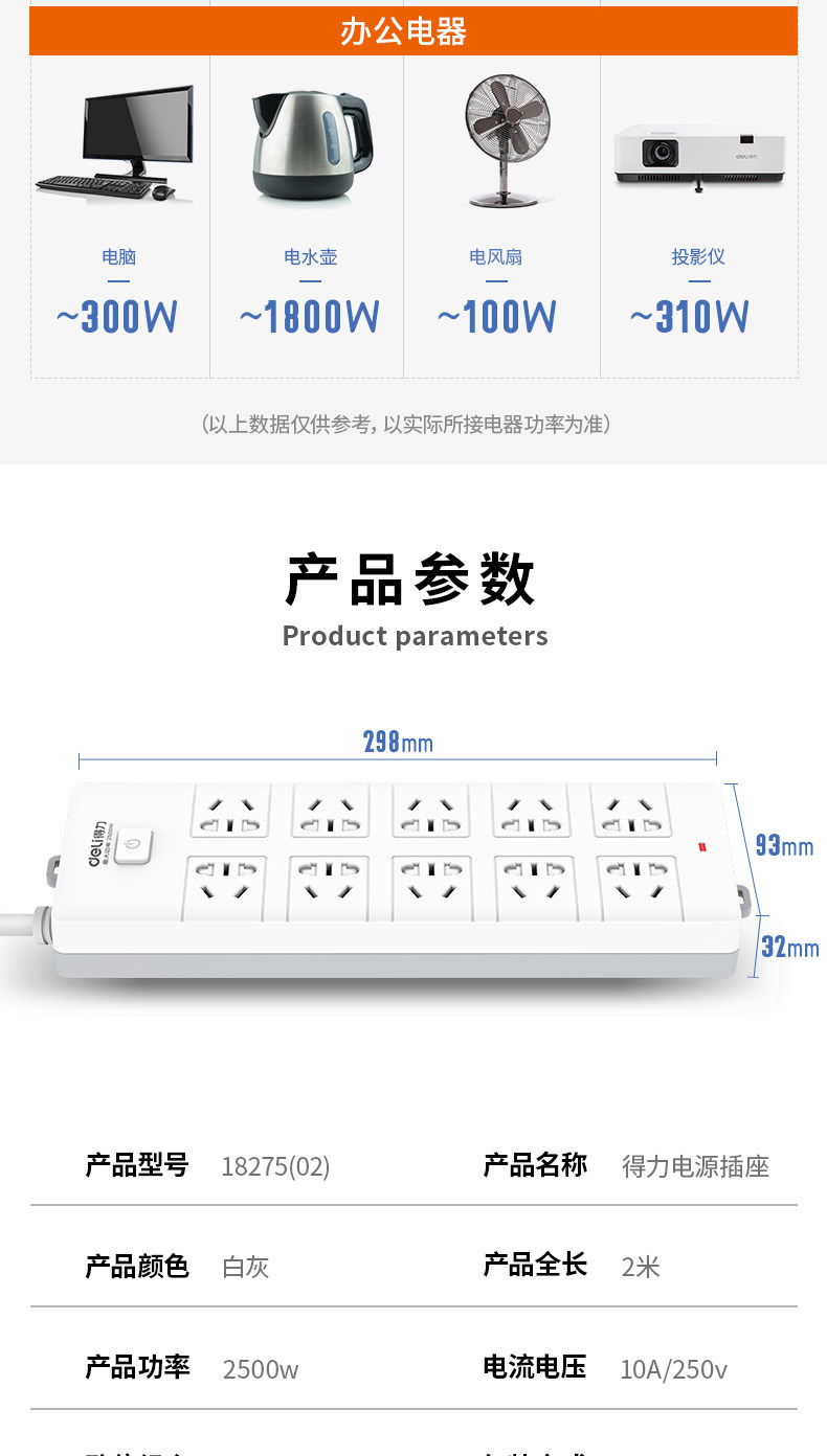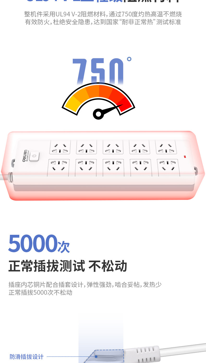 Заглушка Deli Socket -IN -Plug -In Panel Panel Plant Trailer Place -IN с платой с линейным домом много -функциональный преобразователь мощности 2 метра
