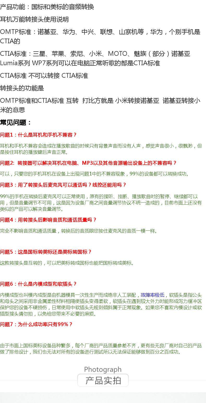 Стандарт США для национального стандартного плагинга OMTP-CTIA Conversion Head друг к другу в наушники 3,5 мм, подключающие яблоки Appyea для домашнего использования