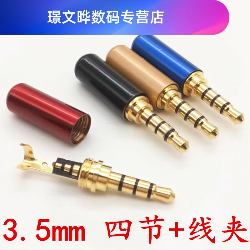 Новая позолоченная сварочная головка для ремонта аудио, 3,5 мм, разъем для наушников 3,5 мм, 4 секции, с зажимом для кабеля из пшеничной ленты
