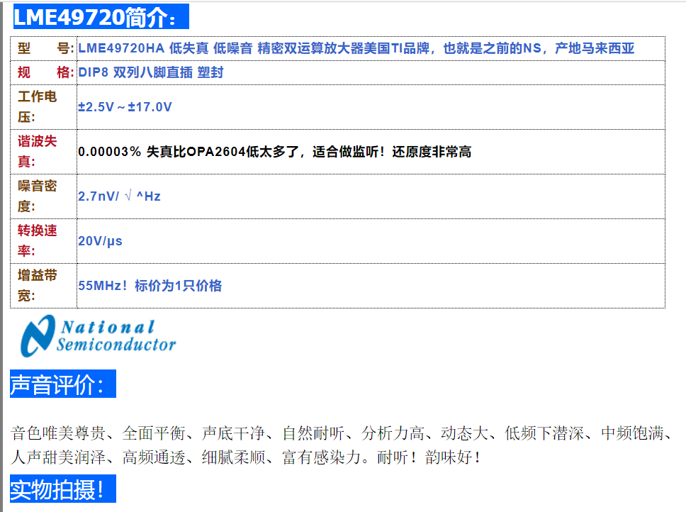 Малайзия сделала LME49720NA Original NS Новое поколение Двойное транспортировка Реальный продукт ниже 2604.