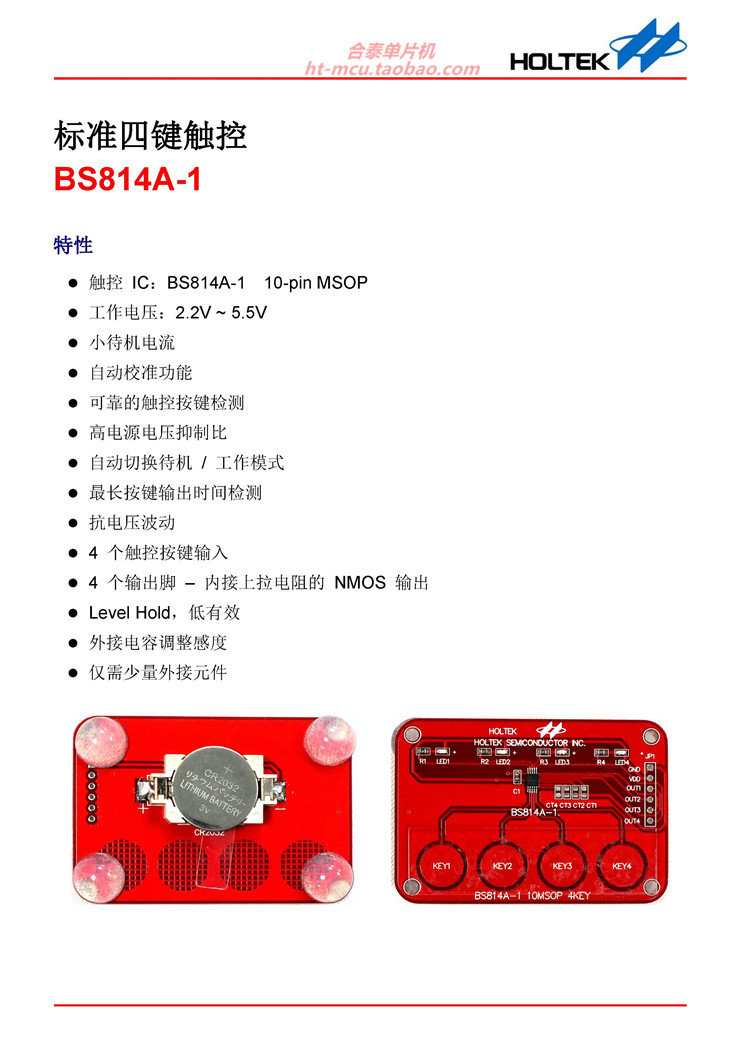 Taiwan Hetai Original BS814A-1 10msop 4 Клавиша емкости для сенсорной кнопки Чип Чип не нуждается в программировании