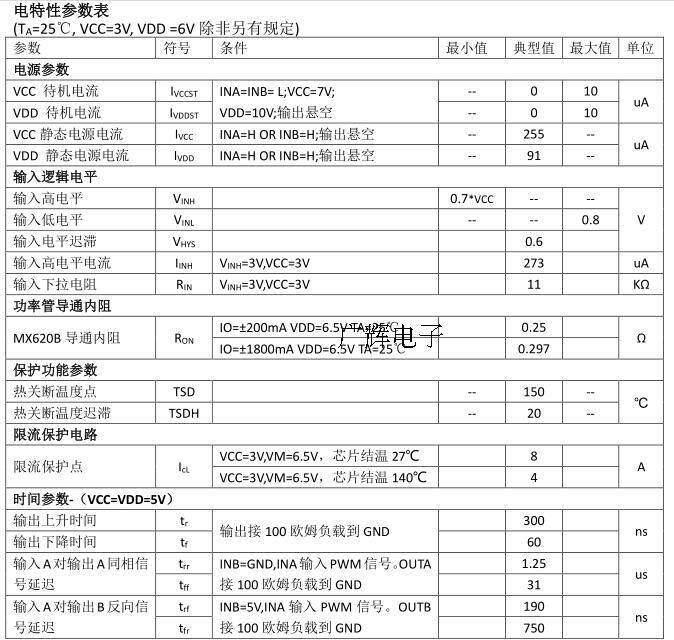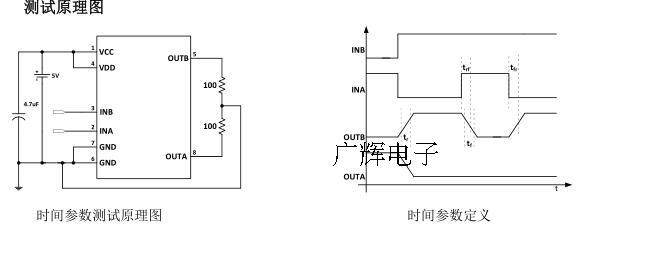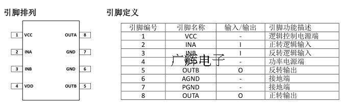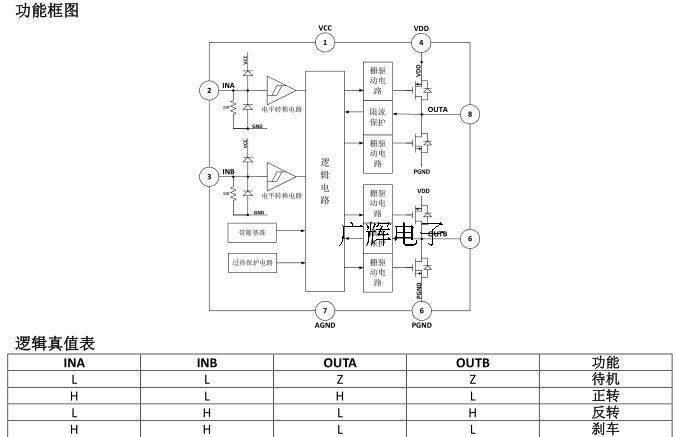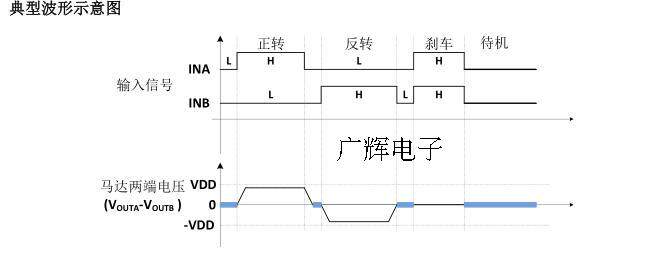 В режиме ожидания, ina = inb = l.Все внутренние схемы, включая силовую трубку водителя, закрыты.Потребление схемы чрезвычайно низкое и низкое