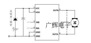 Схема разработана внутри цепи. Когда чип имеет высокую температуру, пиковый ток невелик. В настоящее время он может привести к положительному и противодействию двигателю.