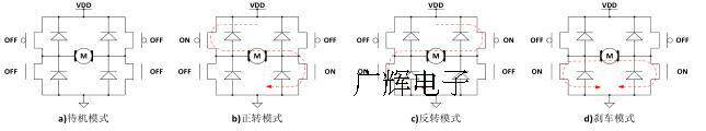 Сумма будет быстро выпущена через трубку NMOS OUTA NMOS или NMOS Outb, и двигатель перестанет вращаться за короткое время.Обратите внимание на режим тормоза