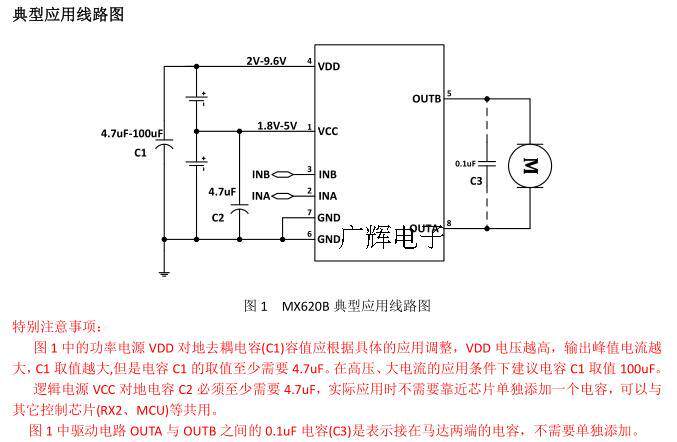Приводная цепь требует питания питания VDD до земной развязки емкости C1 (эталонный маршрут применения Рисунок 1) В основном имеет две функции: 1), поглощающий двигатель