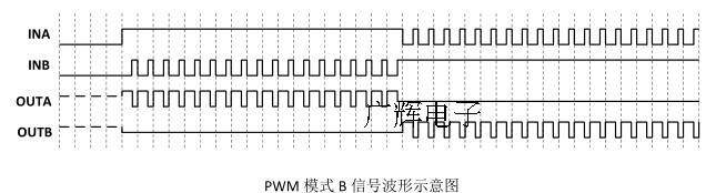 Когда входной сигнал INA является сигналом ШИМ, INB = 1 или INA = 1, INB является сигналом ШИМ, скорость вращения двигателя будет получена буквой ШИМ