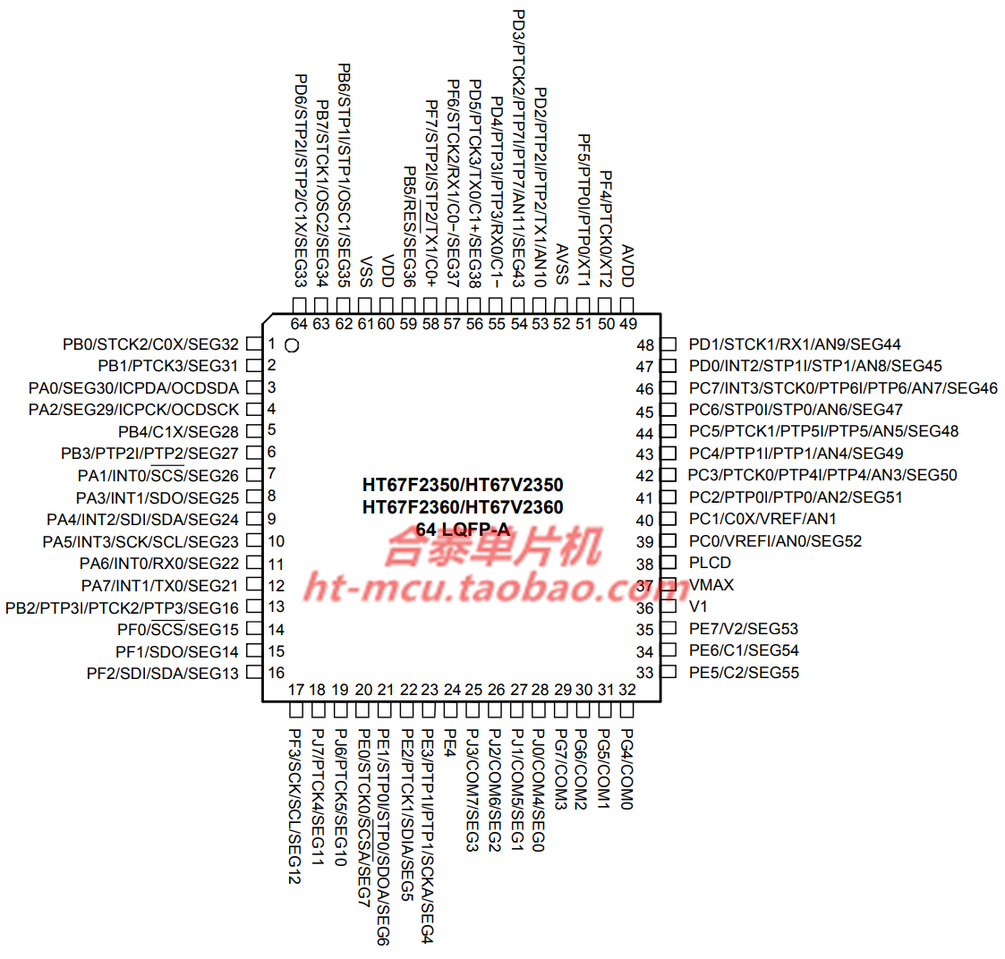 HT67F2350 64LQFP встроенный -в ЖК -дисков с высоким ресурсом AD Flash Single Microcontroller