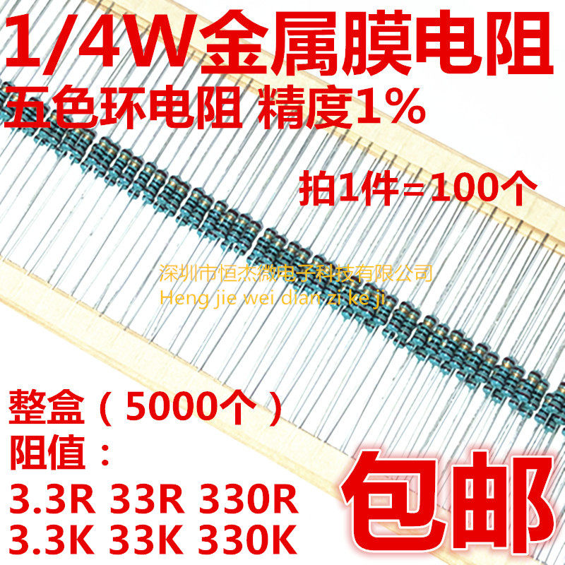1/4W Металлический пленочный резистор 3,3R 33R 330R 3.3K 33K 330K Точность 1%