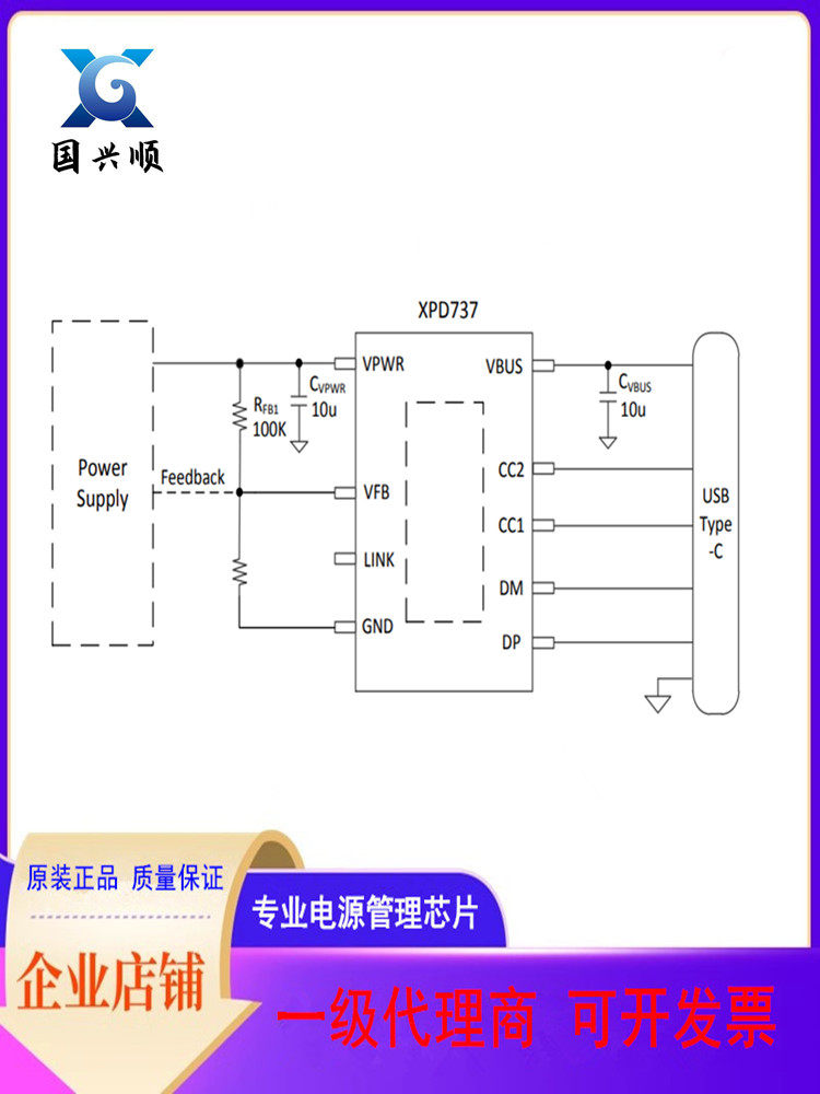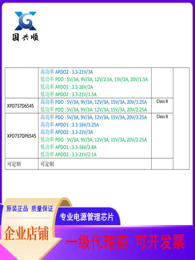 Серия протоколов XPD737 ESOP-8, выходная мощность 65 Вт, взаимосвязанный адаптер контроллера USB PD