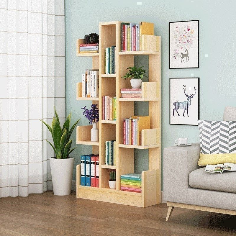 Современная книжная полка из натурального дерева, многослойный книжный шкаф для школьников для спальни