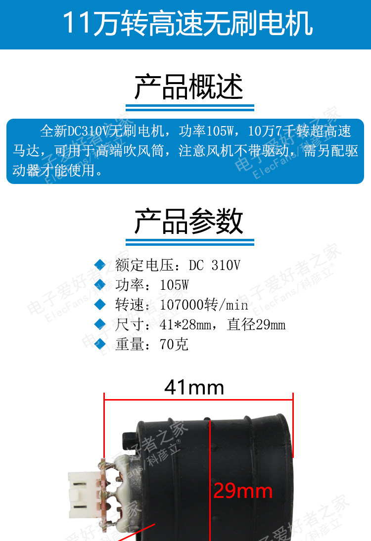 DC, бесколлекторный воздуховод, фен, высокоскоростной мотор, 310v, 105W