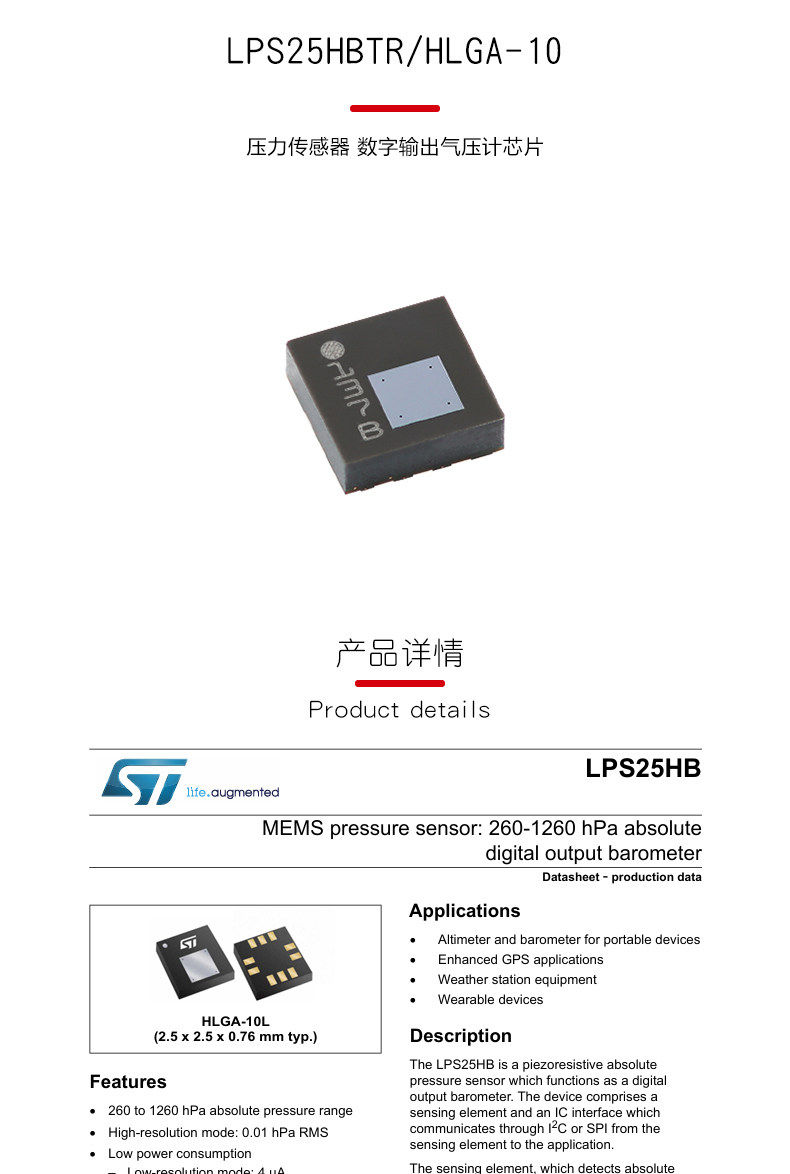 Оригинальный подлинный чип барометра с цифровым выходом датчика давления LPS25HBTR HLGA-10