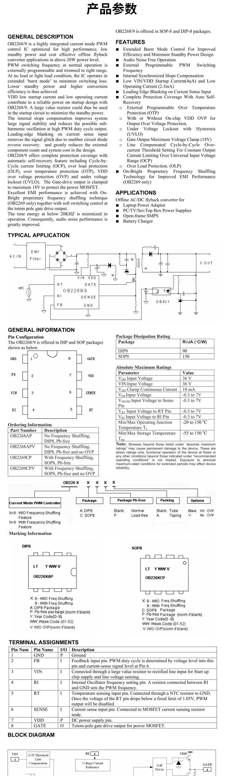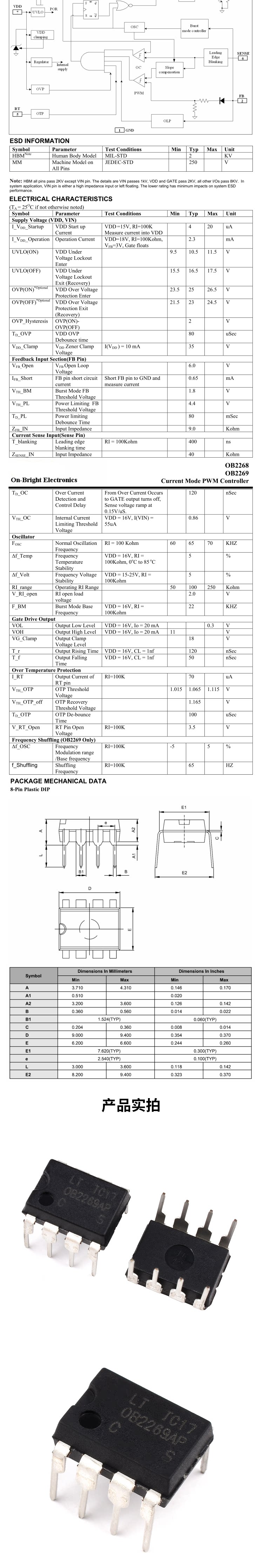 Прямая вставка OB2269AP OB2269 2269D LCD Обычно используется 8-контактный IC Power Chip Power Dip-8