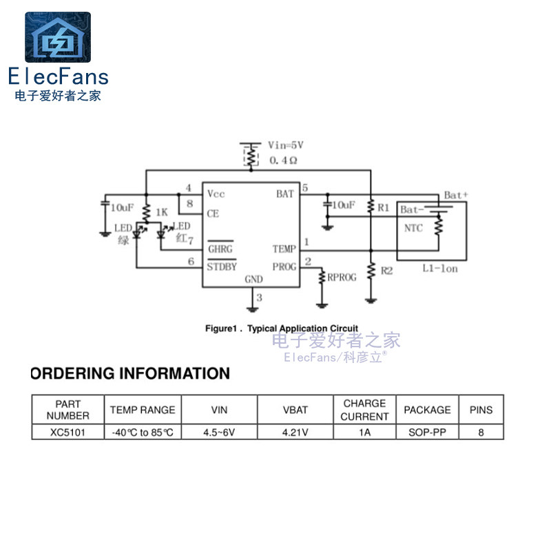 XC5101 Patch SOP-8 1A литийная батарея линейная аккумулятор