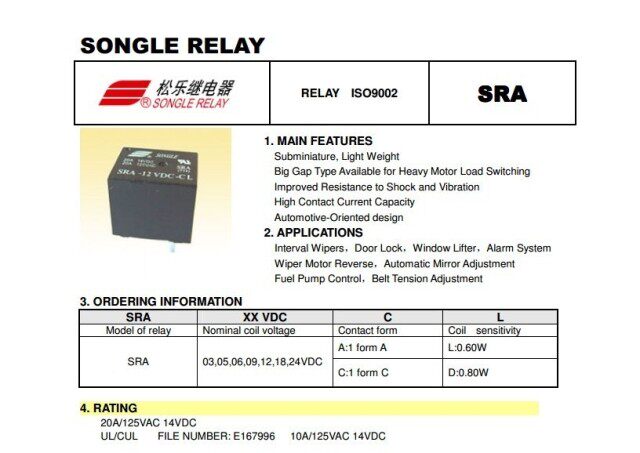 5 Foot | SRA-05 06 09 12 18 24VDC-CL 5V 12V 24V РЕЛЕР Сонгл T74 20A