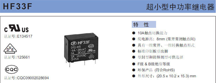 Jzc -33f 005 012 024 -HS3 zs3 Hongfa Relay 5V12V24V4 PIN 5 PIN HF33F