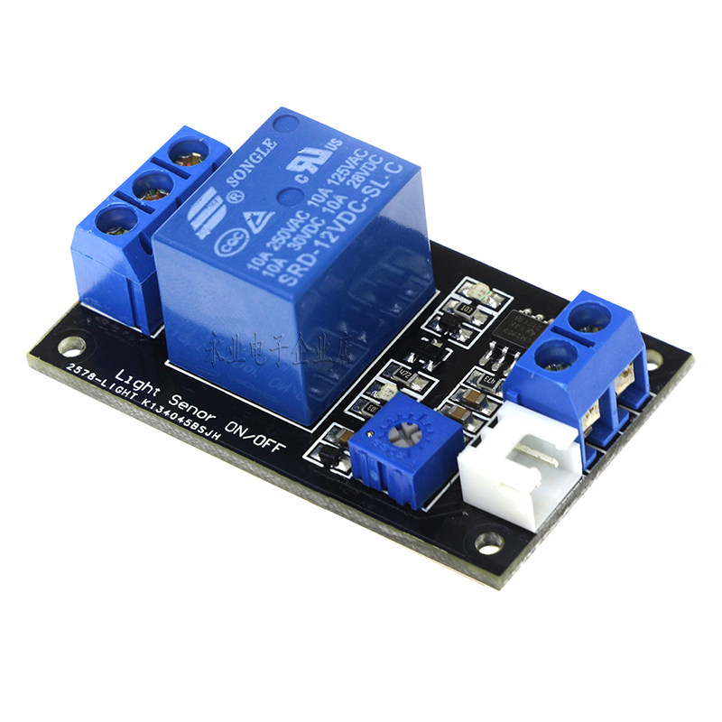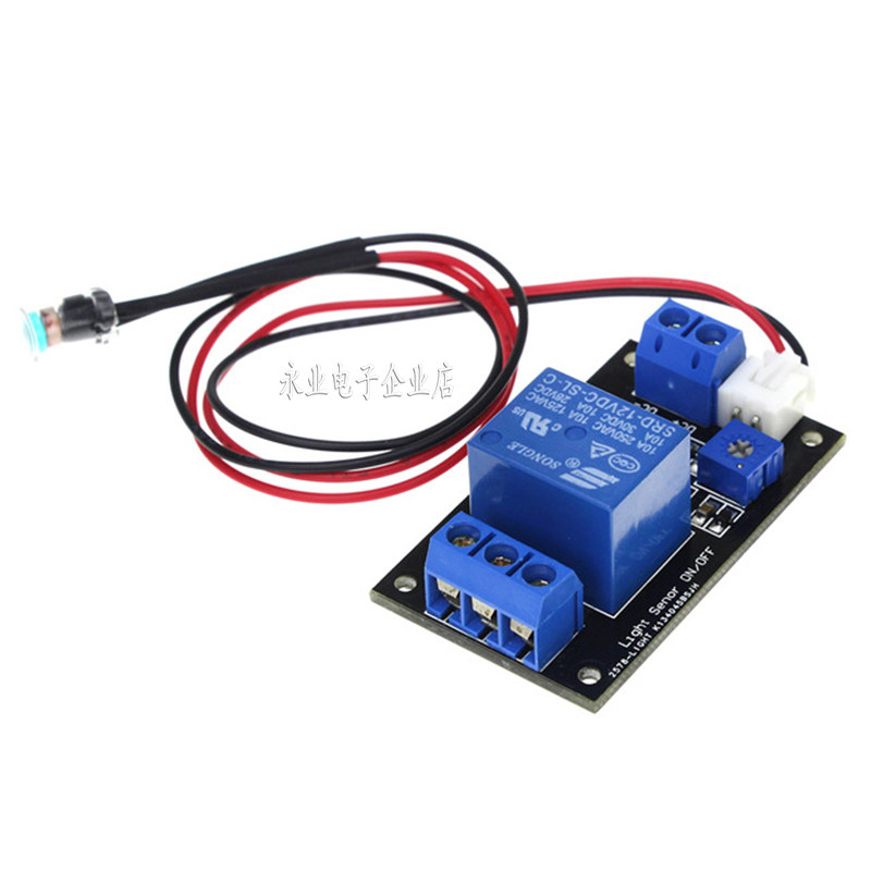 2、 模块 在 光线 暗于 设定 阈值 时 , 继 电器 吸合 , 公 端 与 常 开端 接通 (常闭 端断开) , 外界 环境 光线 设定 阈值 时 时 继 断开 断开 公 公 与 与 与 与 公 公 公 公Частые начинаются с самого начала (подключиться с нормальным концом);