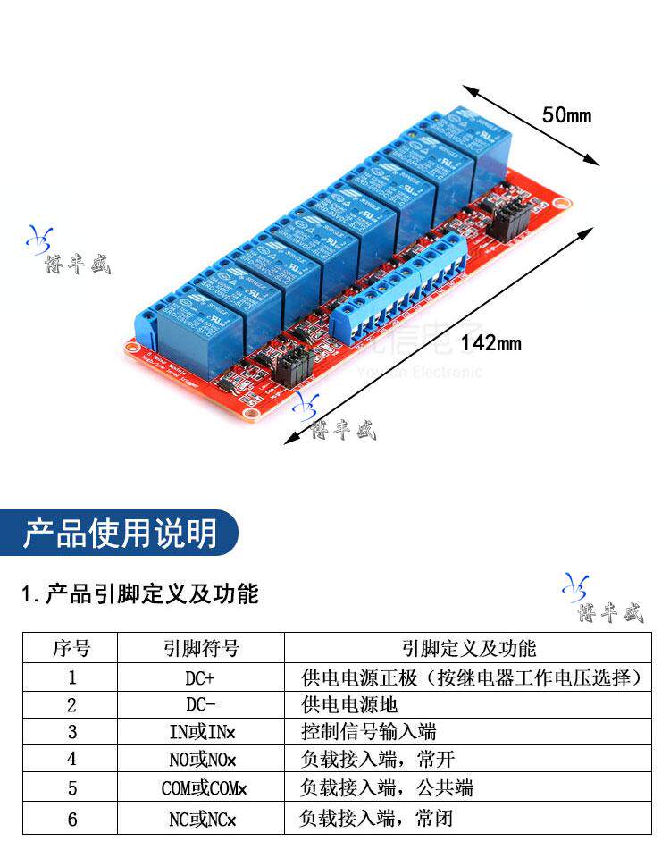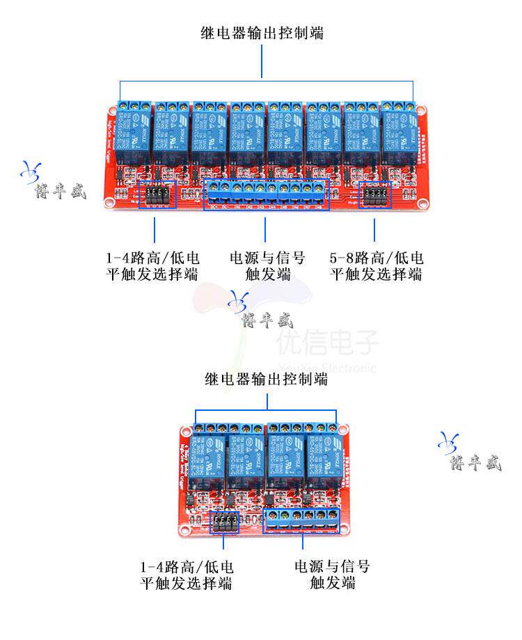 Ретранслятор, цельный модуль, масштаб 1:2, 2/4/8, 5v, 12v, 24v