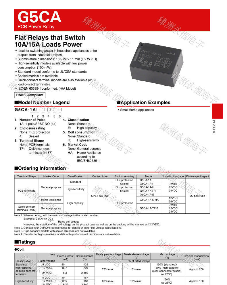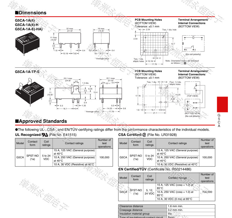 | Цвет: | G5CA-1A-E-5VDC, G5CA-1A-E-12VDC, G5CA-1A-E-24VDC |