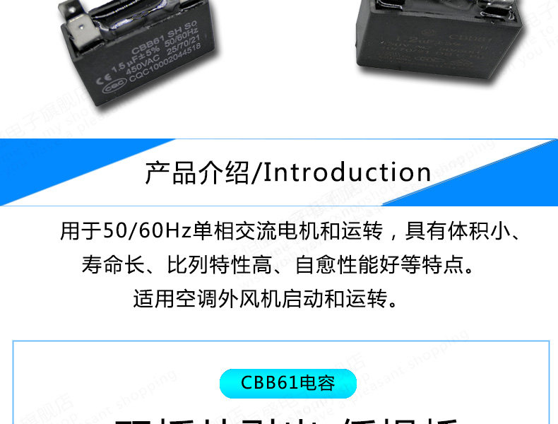 CBB61 конденсатор вентилятора кондиционера 1,2/1,5/2/2,5/3/3,5/4/4,5/5/6 мкФ пусковой конденсатор 450 В