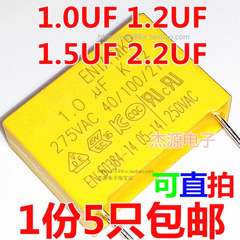 X2 Безопасный конденсатор 275V AC 1UF 1,0 UF 1,2 UF 1,5 UF 2,2 UF -конденсатор вентилятора 0,1 микро метод