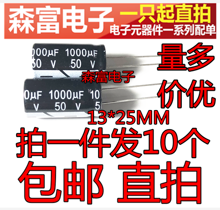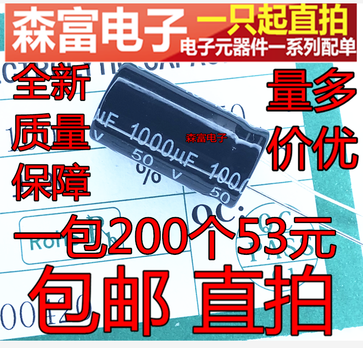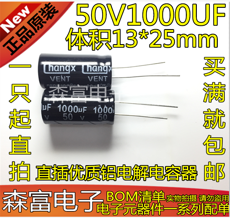 Новая оригинальная электролитическая емкость 50V1000UF Том 13*25 мм Прямая подключаемая подключаемая алюминиевые электролитические конденсаторы