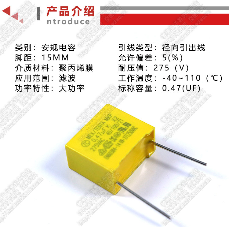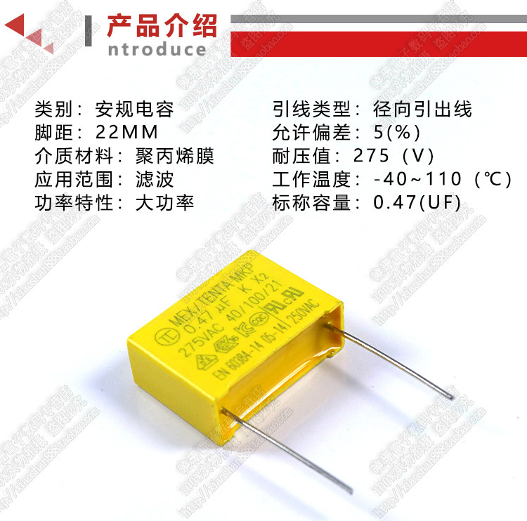 Пропускная способность X2 275V 474K 470NF 0,47 UF DISTAL P = 15 мм/22 мм пленки