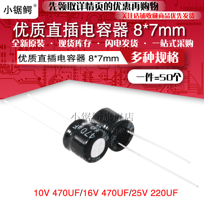 Высококачественный прямой алюминиевый электролитический конденсатор 10 В/470UF 16 В 25 В/220 UF Том 8*7 мм 50
