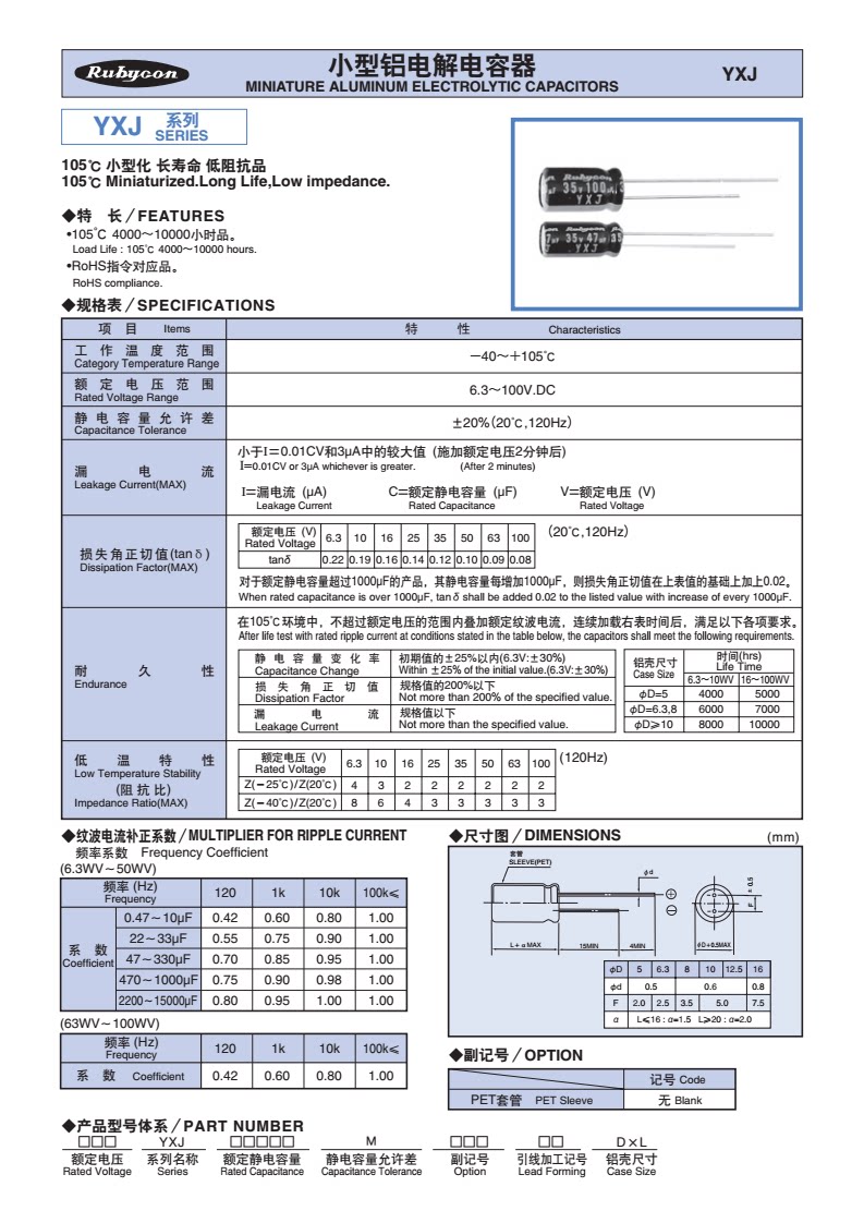 Серия: YXJ (высокая частота, низкое сопротивление, длительный срок службы)