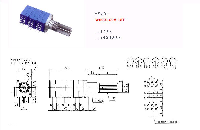 WH9011 Запечатывание однокружного точного потенциометра 6 Союз B50K-15 мм цветочный вал