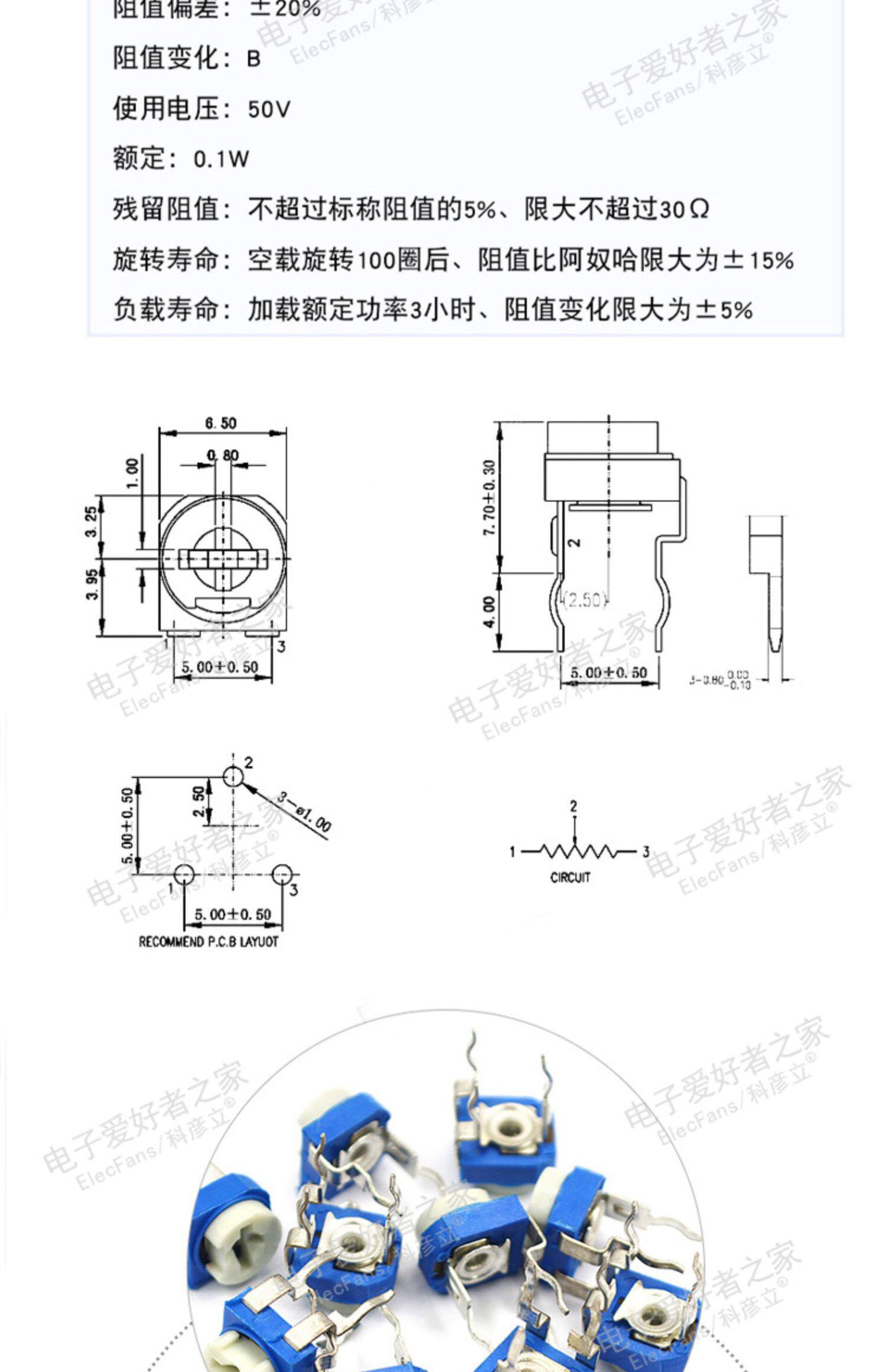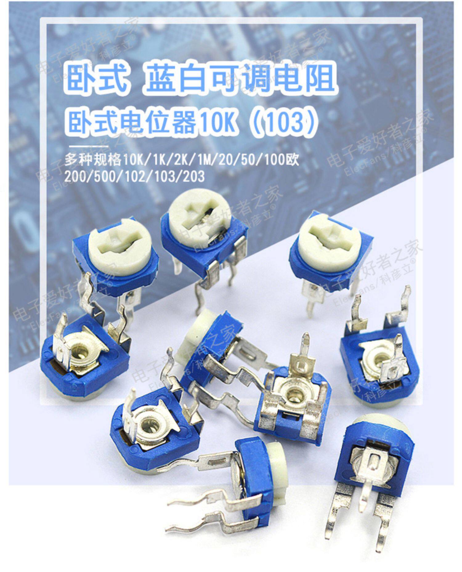 Синий и белый регулируемый сопротивление 500 евро/1K/2K/5K/10K/20K/50K/100K/500K/1M/2M Потенциометр