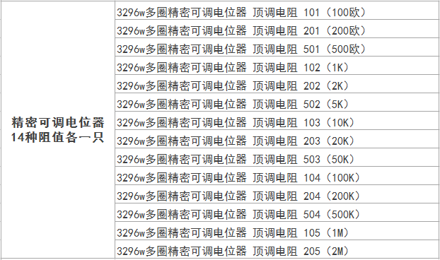 | Цвет: | Пакет резисторов 3296 Вт, 14 часто используемых типов, всего 14, Потенциометр 3386P в упаковке 12 шт., Комплект потенциометров 3362P, 13 типов., WH148 одиночный потенциометр, 9 типов, длина ручки 15 мм |