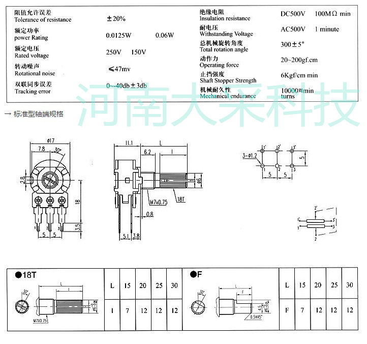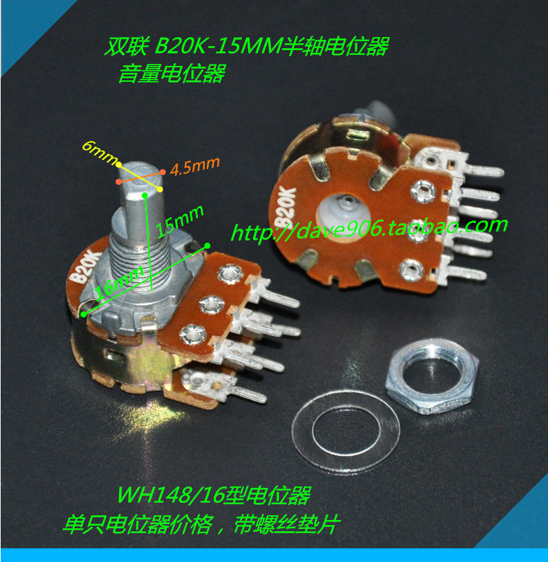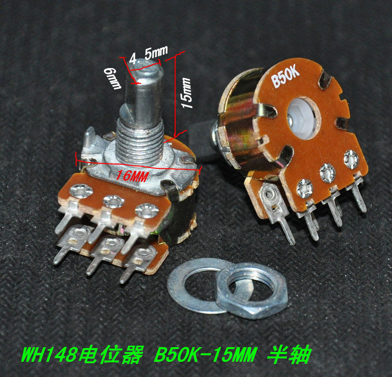 Двойной подключенный полуо осевой потенциометр B20K 10K 50K-15 мм Полуосовый объем потенциометр Полуо осевой ручку
