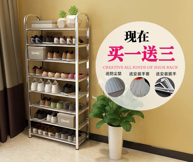 Стеллаж для обуви многослойный хранение металлическое домашнее пыль для обувного шкафа простая емкость.