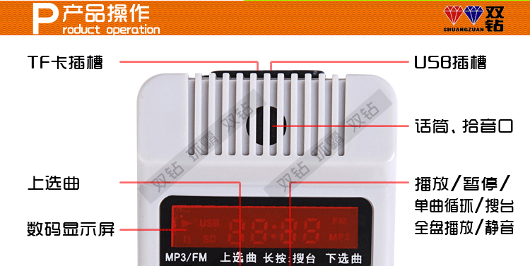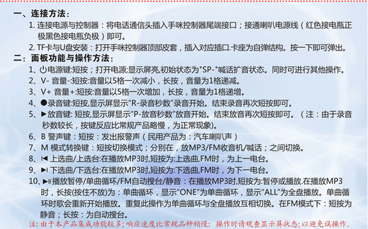 1. Этот продукт в основном предназначен для пользователей на открытом воздухе. Объем большой. Пожалуйста, не выравнивайте рот динамика на ушах ваших или других.