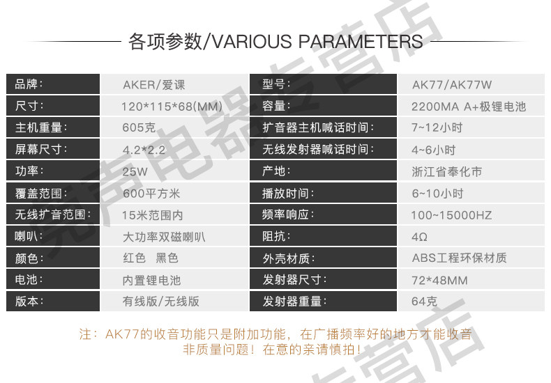 Класс любви AK77/W Bluetooth Speaker Учитель Специализированная многофункция может быть подключена к Us Artifact Portable Player