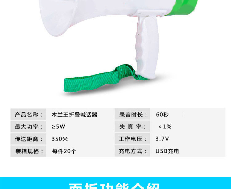 Портативный мегафон, литиевые батарейки с зарядкой, высокая мощность, с возможностью записи звука
