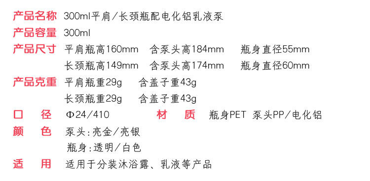 - Длиной 300 мл -Necked+ярко -серебряный белый насос L09