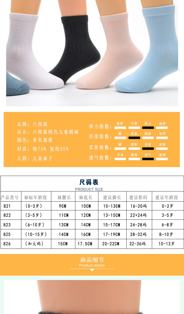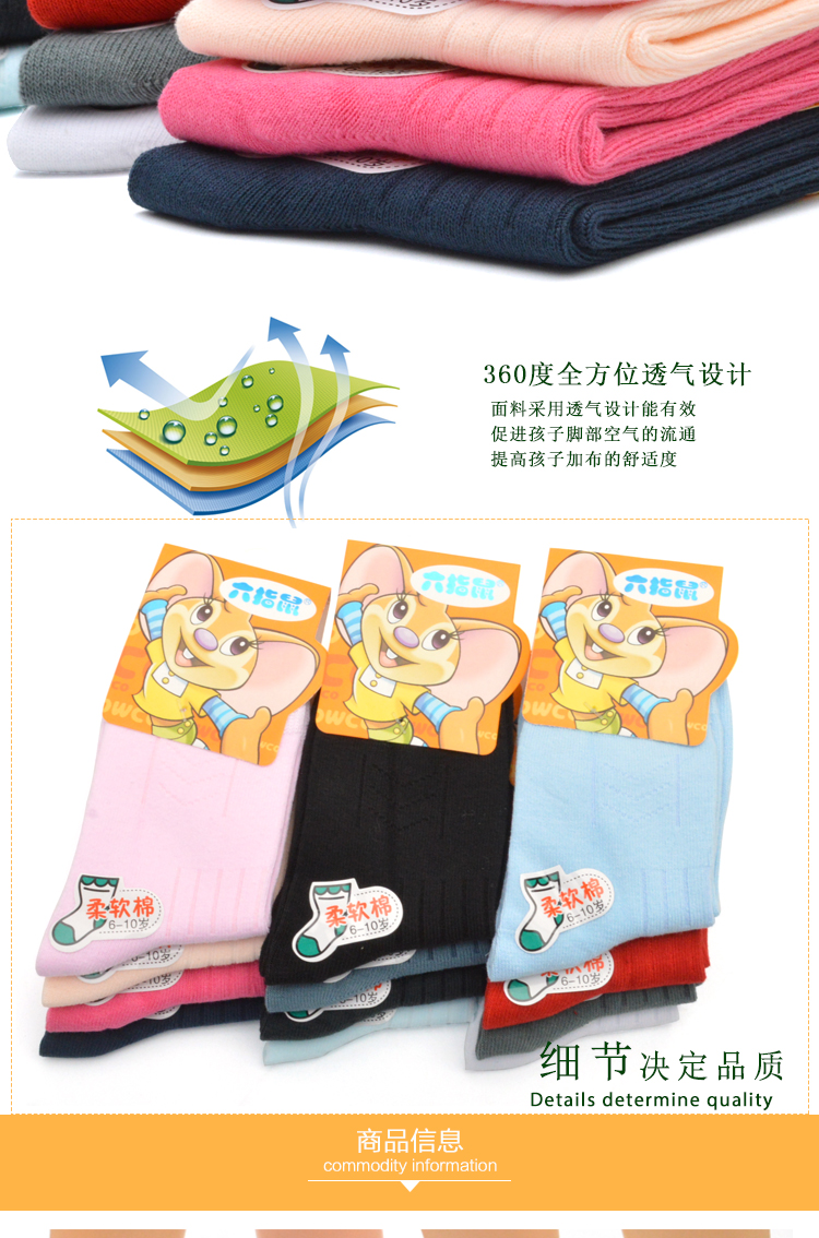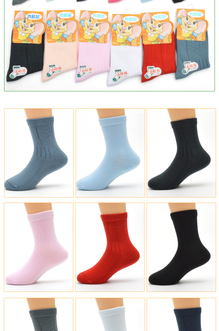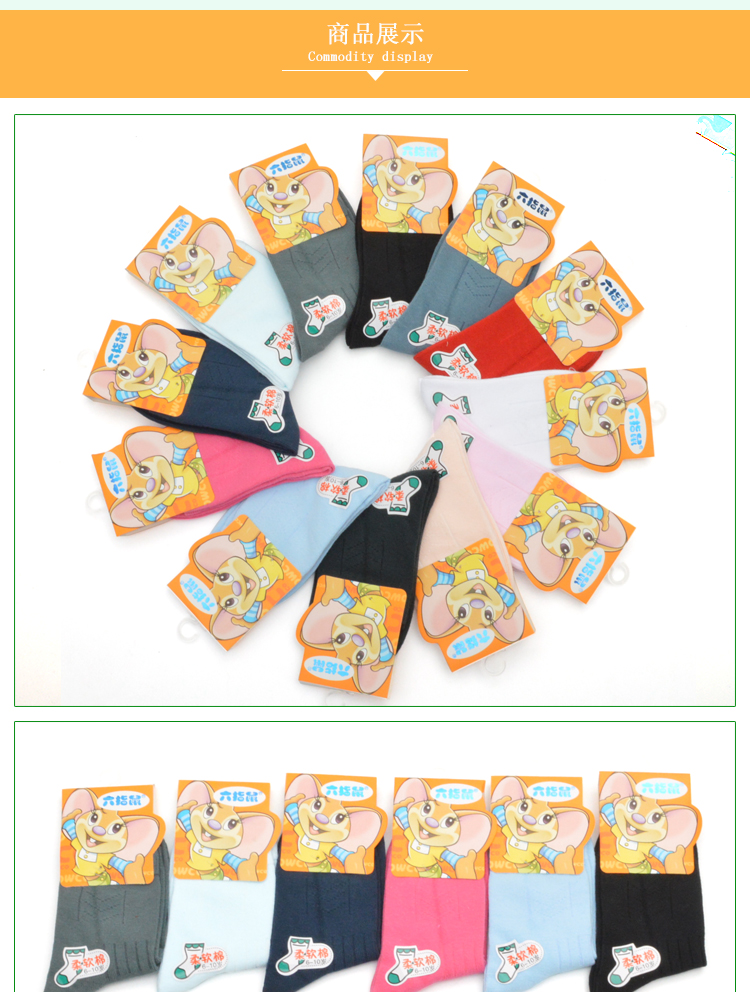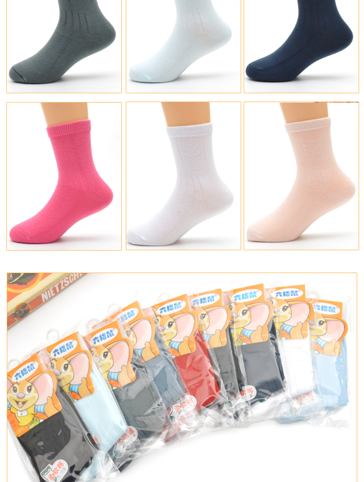 六指鼠 Демисезонные детские хлопковые носки подходит для мужчин и женщин, 0-15 лет, средней длины