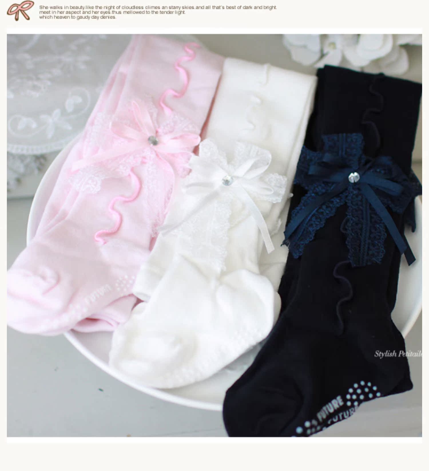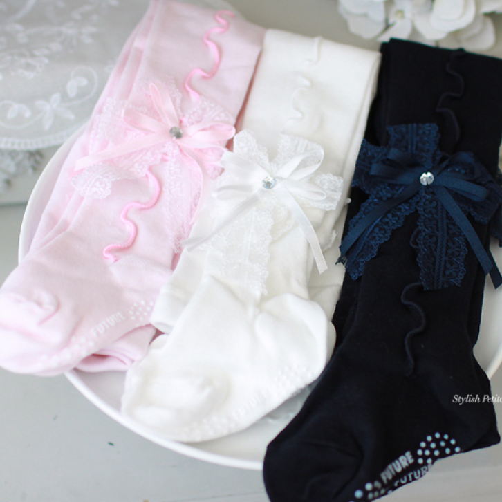 Импортные детские хлопковые кружевные носки с бантиком для принцессы, летние колготки, в корейском стиле