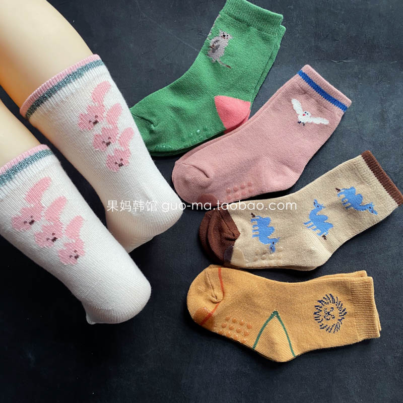 Гума Корейский павильон корейский импортный кокачарм мужской и женский детский хлопок хлопка, анти -скользи, теплые, удобные по всему поглощению комбинация носков